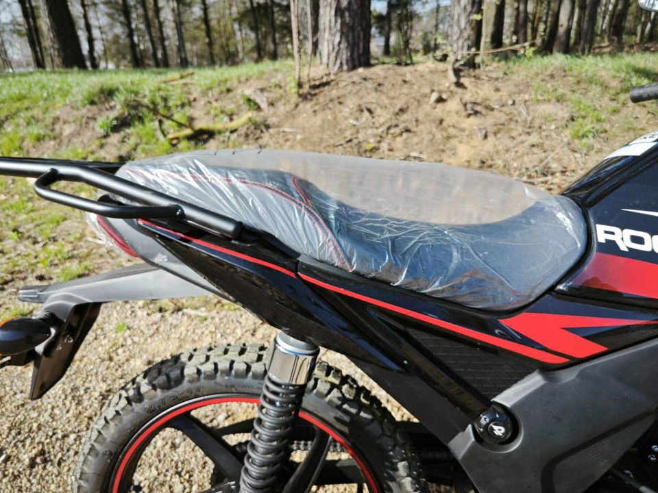 Дополнительно, заводская комплектация этого мопеда включает дуги безопасности и прочные износостойкие крашпеды. Эти элементы служат защитой для облицовочного пластика при падениях, что значительно увеличивает его долговечность. Таким образом, мопед ROCKOT ALPHA TOURIST M-12 не только привлекает своим внешним видом, но и предлагает высокую степень защиты и комфорта в эксплуатации, что делает его отличным выбором для всех любителей путешествий на двух колесах.
